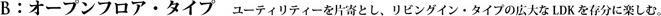 エントランスからバルコニーまでを支配するグランドスペース。ユーティリティは片寄にして通り抜けるためだけの無駄な廊下を排することによって、贅沢な自由空間を堪能できます。